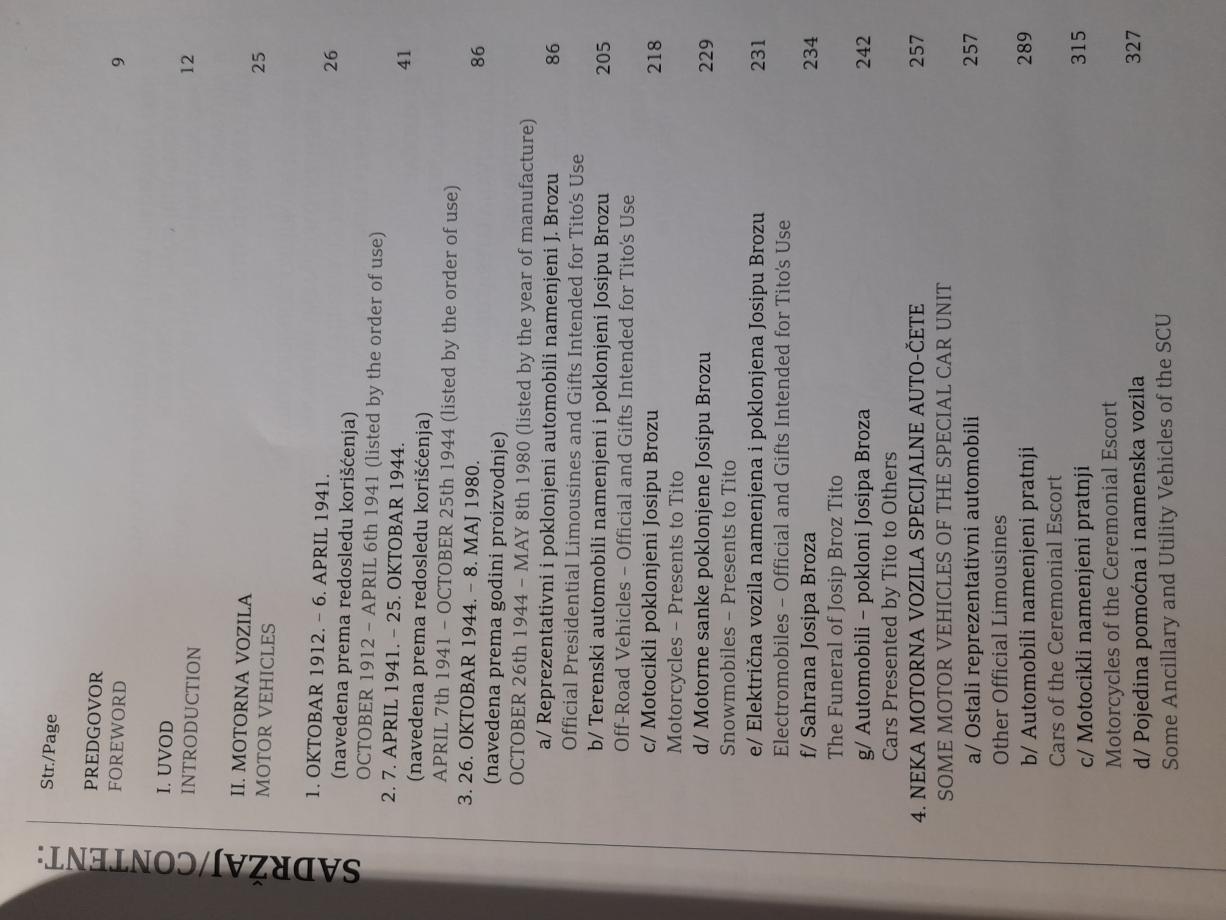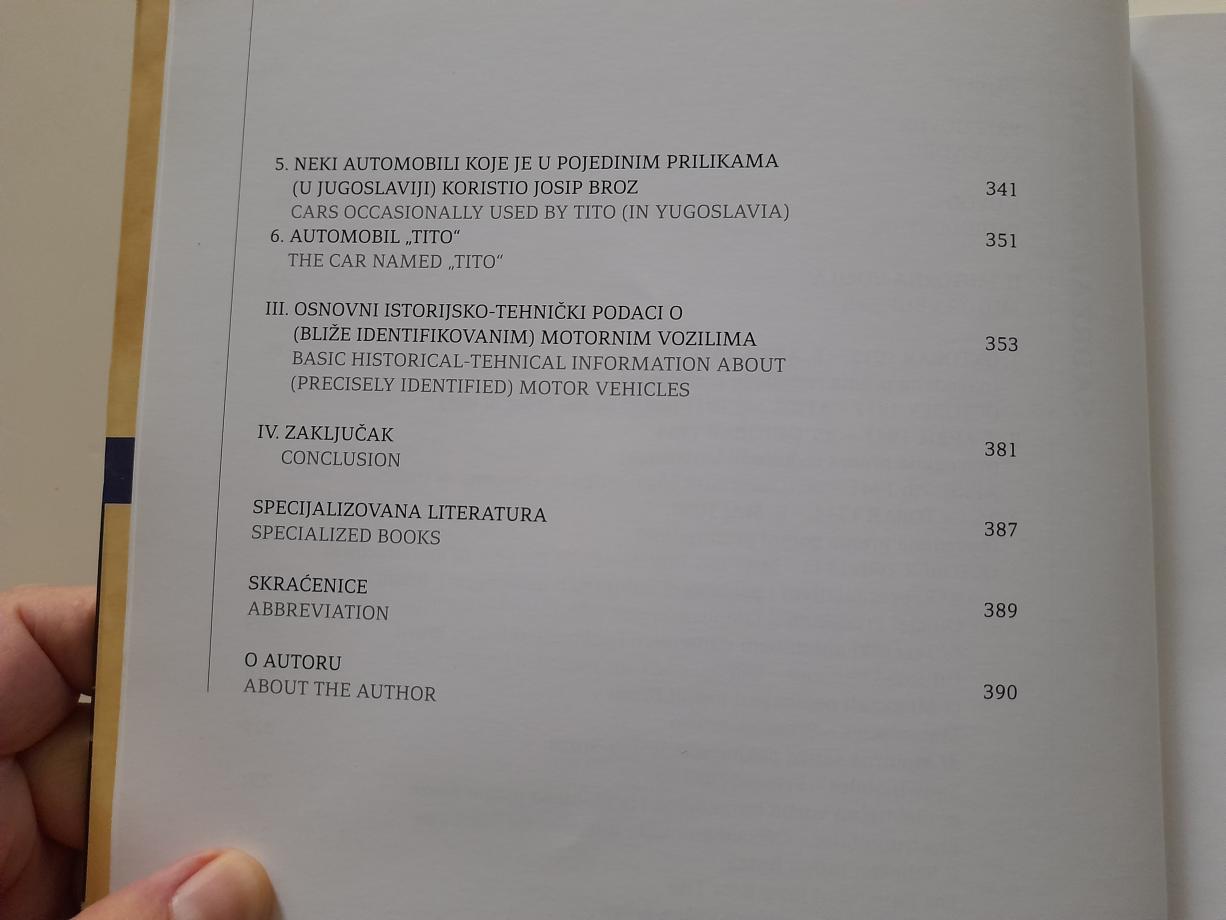 Knjiga obrađuje jedan interesantan i do sada skoro nepoznat deo biografije nekadašnjeg predsednika Jugoslavije... Upoznavanje njegovih automobila doprinosi boljem sagledavanju njegovog karaktera i njegovih afiniteta, otkriva nam želje koje je imao i načine na koje ih je zadovoljavao...