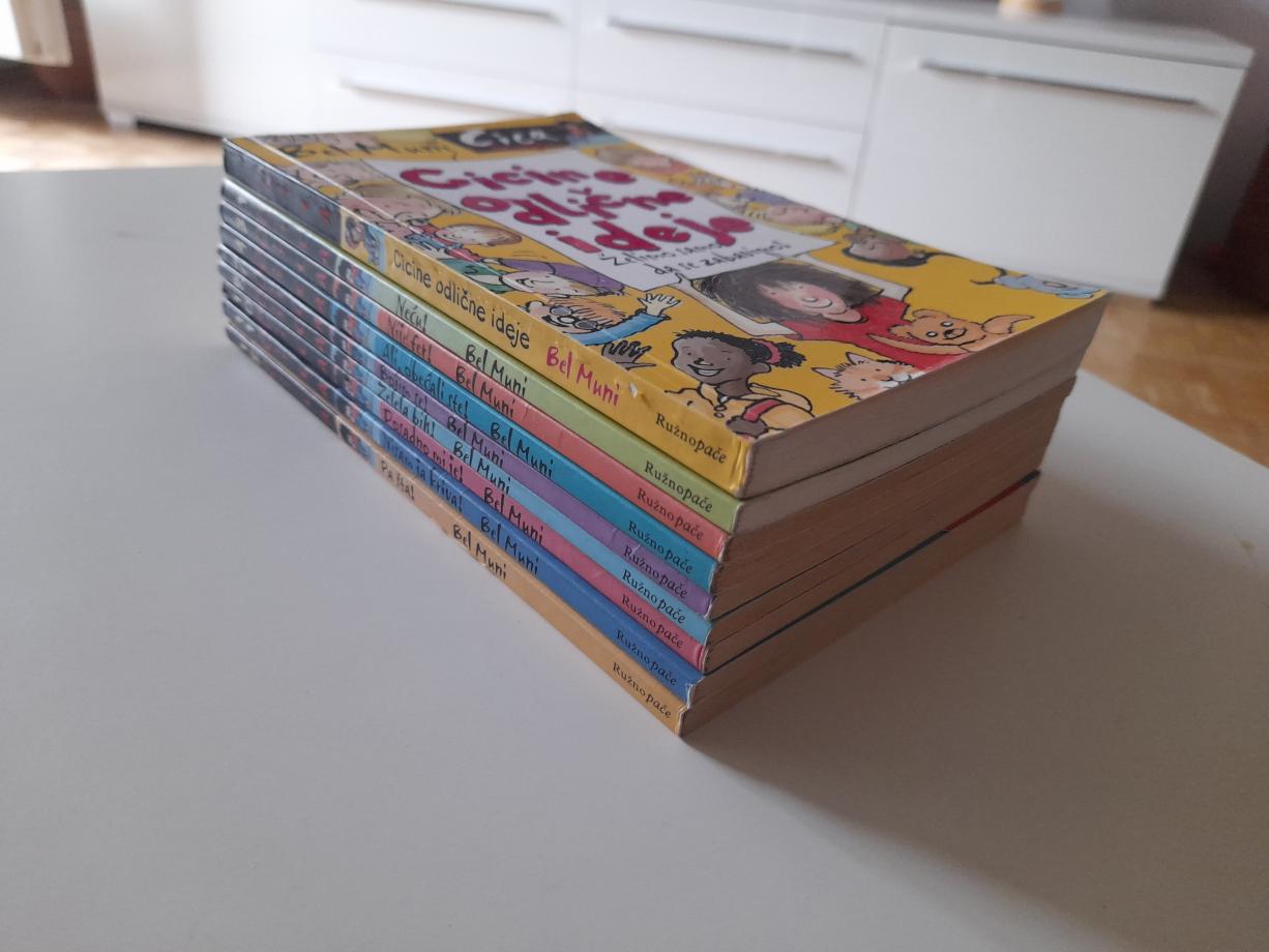 Polovne knjige, izuzetno očuvane. U knjizi Cicine odlične ideje, popunjen mali deo sa pitanjima vlasniku knjige.