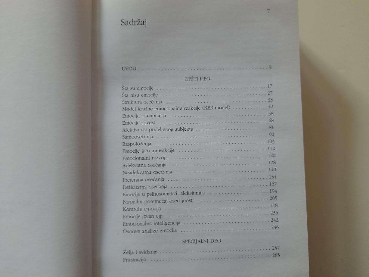 Obimna (756 str., tvrd povez) i danas već kultna knjiga prvi put je objavljena 1993., a u ovom dopunjenom i izmenjenom izdanju, nalazi se i nekoliko novih poglavlja - o usamljenosti, uvređenosti i o osećanjima lepog i ružnog.