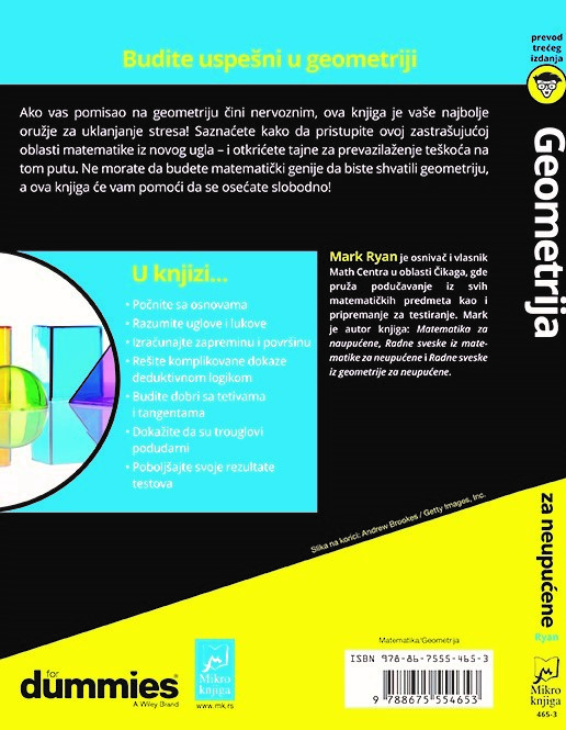 Geometrija za neupućene, treće izdanje, može vam biti od velike pomoći ako ste udarili u zid koji se zove geometrija. Ili ako ste student geometrije, knjiga vas može sprečiti da udarite u zid. Kada vam se otvori svet geometrije i stvari počnu da klikću, možda ćete zaista ceniti ovu temu, koja fascinira ljude milenijumima i koja nastavlja da privlači ljude ka karijeri u umetnosti, inženjerstvu, arhitekturi, planiranju grada, fotografije i kompjuterske animacije, između ostalog.
