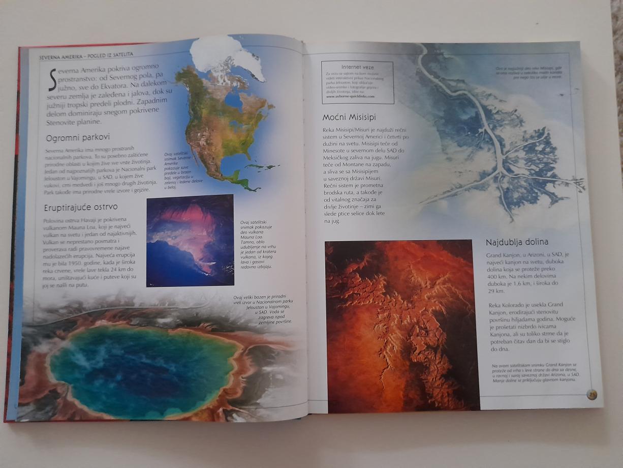 Sadrži satelitske fotografije Zemljinih najspektakularnijih površina, korisne informacije o izradi i korišćenju geografskih karata, indeks podataka o državama sveta i veliki izbor preporučenih sajtova.