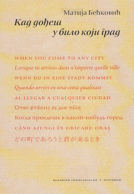 Knjiga „Kad dođeš u bilo koji grad“ Matije Bećkovića predstavlja jedno od najpoznatijih i najprevođenijih pesničkih dela srpske književnosti, istinsku poetsku himnu o prolaznosti, identitetu i univerzalnom iskustvu susreta sa svetom i samim sobom. Ova poema, koja je prevodima na brojne jezike – od italijanskog i francuskog do japanskog i ruskog – postala deo svetske književne riznice, nosi pečat Bećkovićevog prepoznatljivog jezika: ritmičnog, punog ironije, lirizma i duboke misaonosti. Kroz stihove koji su istovremeno jednostavni i filozofski uzvišeni, pesnik govori o dolasku u grad kao o simboličnom trenutku suočavanja s prošlošću, sećanjem i zavičajem. Svaki grad u Bećkovićevoj poemi postaje prostor prepoznavanja i otkrivanja, mesto gde se spajaju čovekova lična i kolektivna istorija, gde se sreću nostalgija i čežnja, a reči postaju most između vremena i prostora. Pesnikovo putovanje kroz „bilo koji grad“ zapravo je duhovno hodočašće kroz život – potraga za sobom, za smislom, za korenima, ali i za univerzalnim domom koji prevazilazi geografske i jezičke granice. Bećković u ovoj poemi ne slavi samo gradove, već čoveka u njima, njegovu prolaznost, usamljenost i neugaslu potrebu da pripada. „Kad dođeš u bilo koji grad“ nije samo pesma o mestu, već o osećanju pripadnosti, o zavičaju koji nosimo u sebi gde god da krenemo. To je delo koje potvrđuje Matiju Bećkovića kao jednog od najvažnijih savremenih pesnika srpskog jezika, čuvara narodne reči i autora koji, kroz univerzalnu poruku i poetsku lepotu, spaja različite kulture i vremena u jednom istinskom, nadvremenskom pesničkom doživljaju.