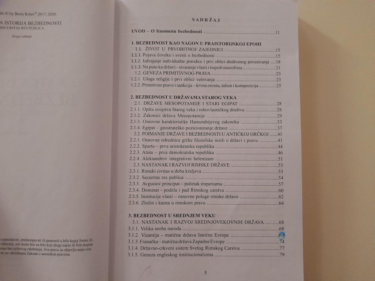 Knjiga koja je pred čitaocima nastala je kao rezultat autorovog petnaestogodišnjeg predavačkog iskustva na predmetu Istorija ekonomskih i pravnih odnosa, koji je vremenom „evoluirao“ u predmet pod nazivom Istorija bezbednosti.