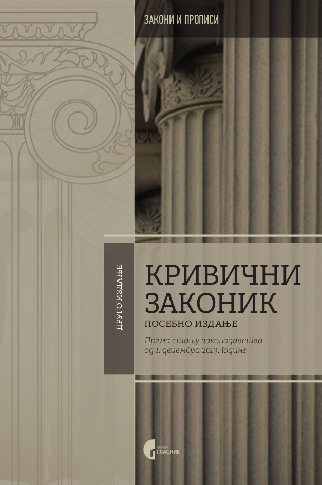 ’’Posebno izdanje Krivičnog zakonika obuhvata prečišćene tekstove ovog zakonika od donošenja 2005. godine do poslednjih njegovih izmena i dopuna koje su stupile na snagu 1. decembra 2019. godine. Izmenjene i dopunjene verzije članova označene su napomenama o njihovom vremenskom važenju. Član koji je prestao da važi obeležen je tamnijom bojom, kako bi se razlikovao od pozitivnopravne odredbe. Član uokviren belom bojom predstavlja tekst Zakonika usvojen kasnije u odnosu na izvorni tekst.