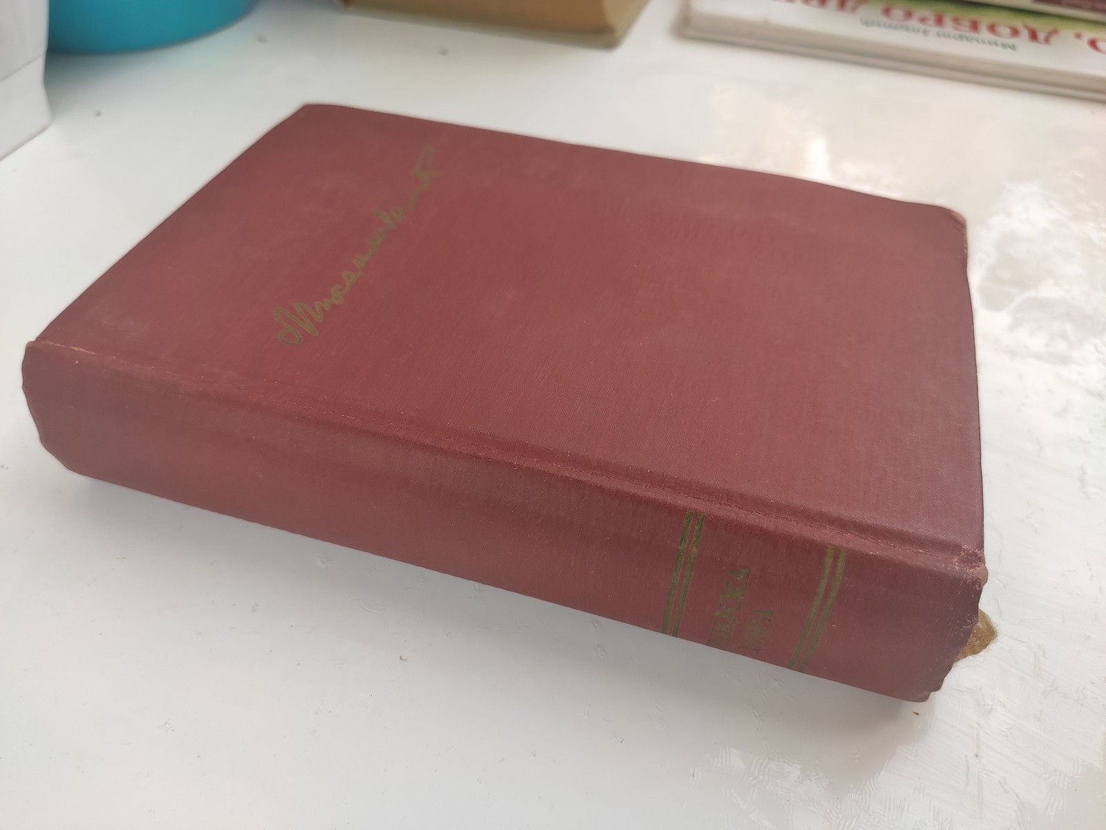 Dobro očuvana knjiga koja na prvoj strani ima žutu mrlju u donjem desnom uglu,