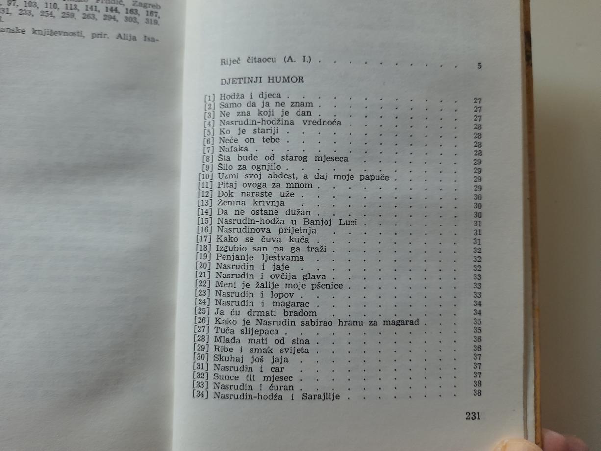 Ovaj izbor rađen je prema našim postojećim zbirkama i, manje, prema anegdotama štampanim u časopisima. Razumije se da su dosadašnji priređivači uvrštavali dio građe ranijih priređivača, tako S. Sremac od E. Mulabdića, a mnogi od S. Sremca, i slično. Od poratnih izdanja želim da istaknem zbirku Nasrudin-hodža, priče i dosjetke koje je sakupio Ahemt H. Jašaroglu i A. Bejtića u Priče Orijenta.