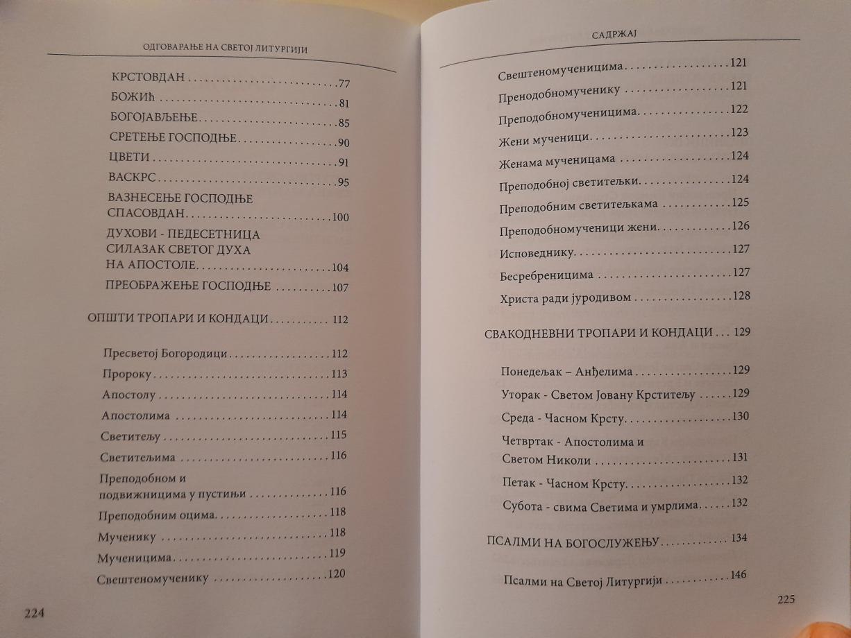 Knjiga Odgovaranje na Svetoj liturgiji sadrži odgovore naroda tokom Svete liturgije na službi u crkvi.