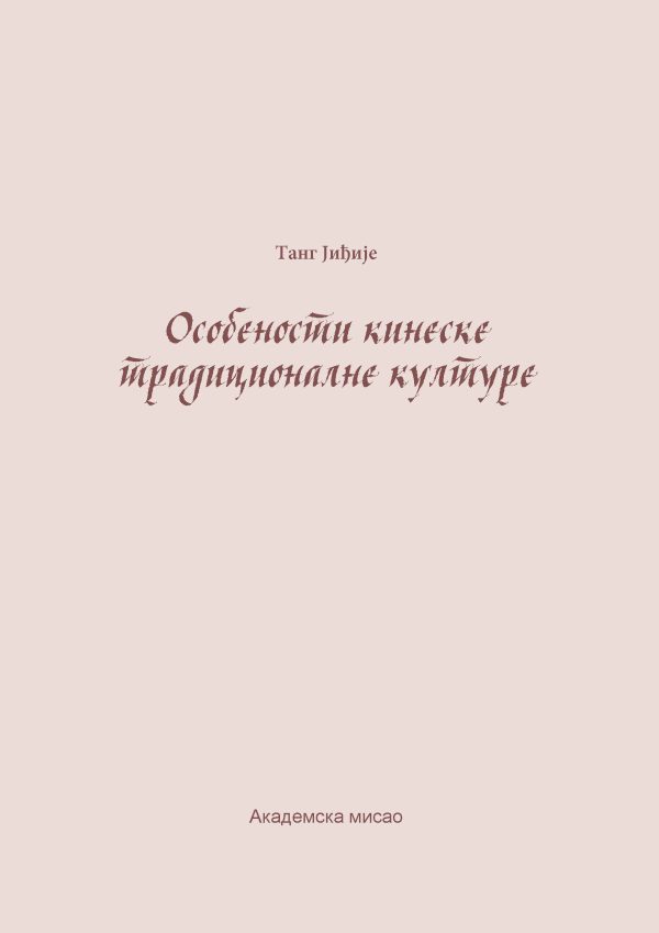 Knjiga „Osobenosti kineske tradicionalne kulture“ autora Tanga Jiđijea predstavlja sveobuhvatan i sadržajan uvod u bogat i slojevit svet kineske civilizacije, jedne od najstarijih i najuticajnijih kultura u istoriji čovečanstva. Ovo delo pruža čitaocu dubinsko razumevanje kulturnih, filozofskih, društvenih i duhovnih temelja koji su oblikovali kinesko društvo kroz više hiljada godina.