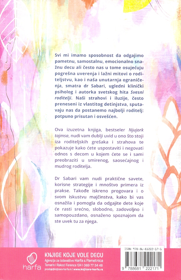 Svi mi imamo sposobnost da odgajimo pametnu, samostalnu, emocionalno snažnu decu ali često nas u tome osujećuju pogrešna uverenja i lažni mitovi o roditeljstvu, kao i naša unutarnja ograničenja, smatra dr Sabari, ugledni klinički psiholog i autorka svetskog hita Svesni roditelji. Naši strahovi i iluzije, često preneseni iz vlastitog detinjstva, sputavaju nas da postanemo najbolji roditelj: potpuno prisutan i osvešćen.