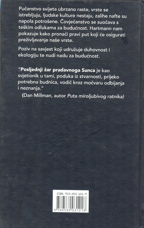 Pučanstvo svijeta ubrzano raste, vrste se istrebljuju, ljudske kulture nestaju, zalihe nafte su napola potrošene. Čovječanstvo se suočava s teškim odlukama za budućnost. Hartmann nam pokazuje kako pronaći pravi put koji će osigurati preživljavanje naše vrste.