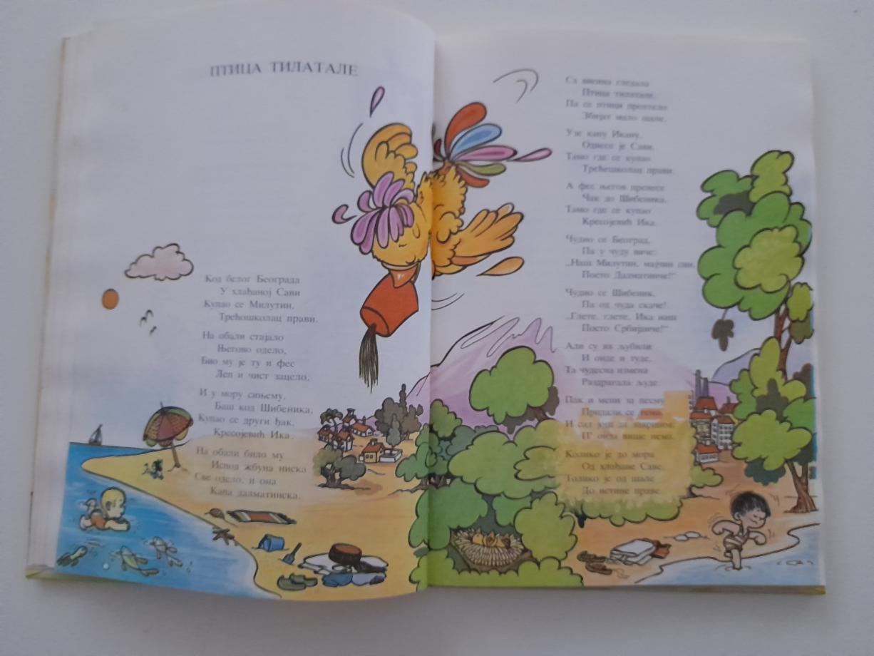 Mali brata, Kupanje, Materina maza, Laza, Mali Jova, Srda, Ciganin hvali svoga konja, Golema repa i još mnogo lepih pesama za decu u izboru Mire Alečković sa predivnim ilustracijama u boji koje je naslikala Vladana Likar-Smiljanić.