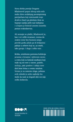 Robotka Dragane Mladenović je zbirka poezije koja se neustrašivo suočava sa mračnim aspektima savremenog društva, posebno ističući otrovne posledice patrijarhata.