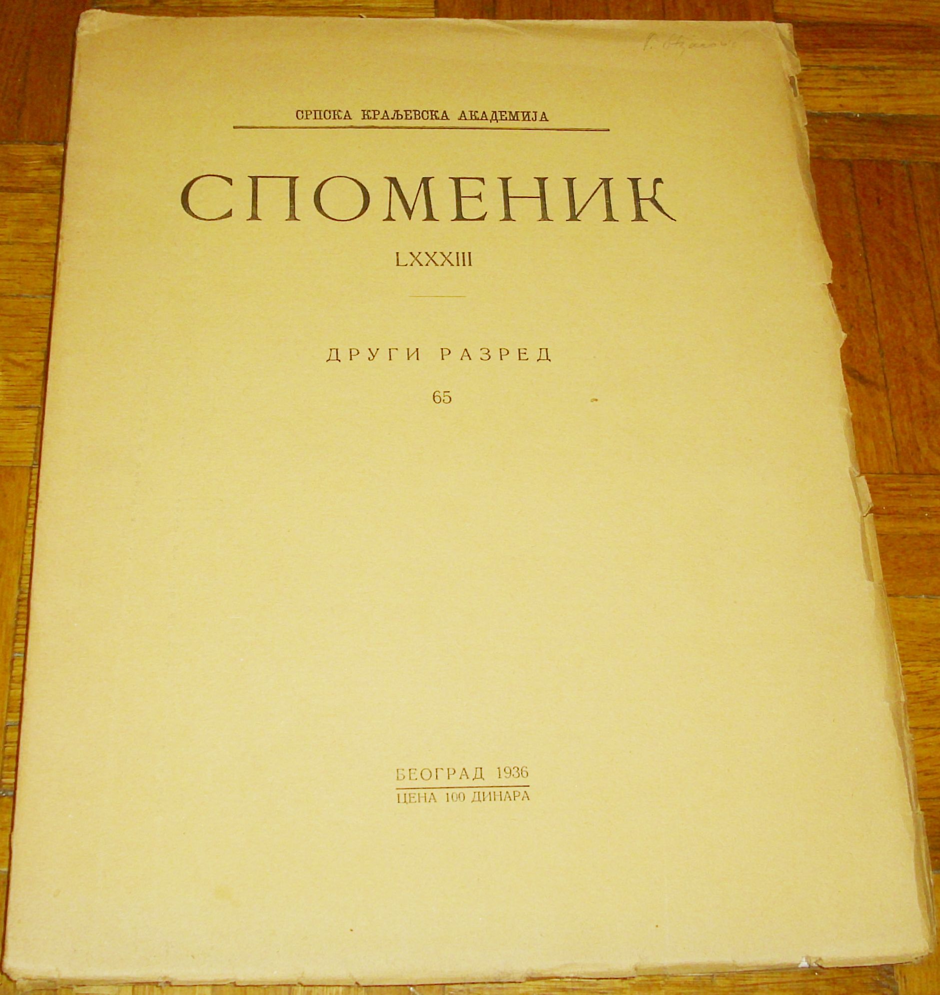Izdavač : Srpska kraljevska akademija - Beograd ; 1936.god.