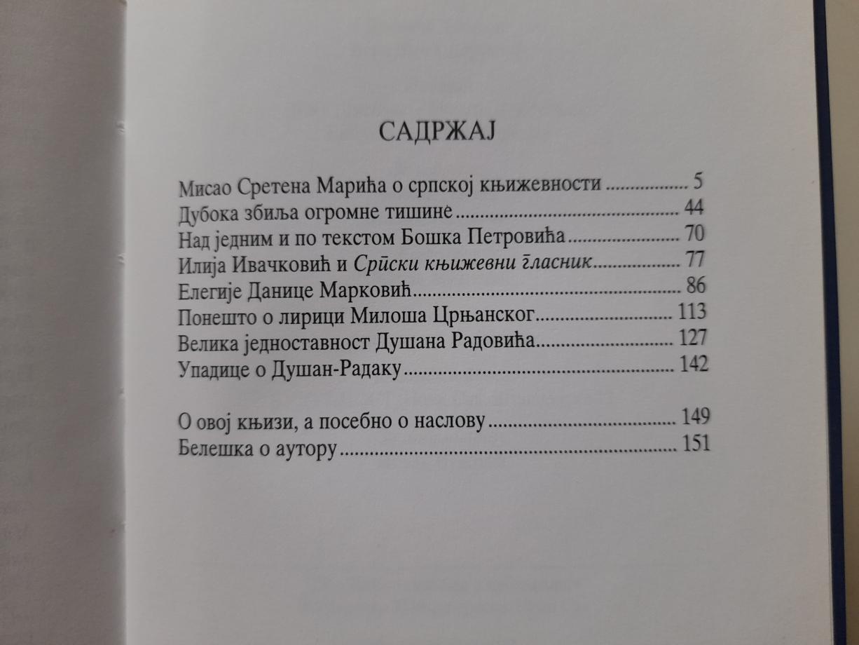 Pisao je o poeziji Jovana Sterija Popovića, Vaska Pope, Milana Ćurčina, Dušana Radaka, Nedeljka Mamule, Bogdana Mrvoša i Jovana Zivlaka. Pisao je o priređivačkom radu Vase Pavkovića. Pisao je i o putopisima Milorada Grujića, o kritici Vujice Rešina Tucića, o antologičarskom radu Jovice Aćina. Govorio je o Raši Popovu. Recenzirao je knjige Gordane Đilas i Ne. Čurganova...