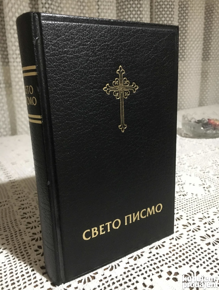 Starija lepo ocuvana Biblija. U izdanju Jugoslovenskog biblijskog drustva. Cirlica. Prevod Danicic/Karadzic koji koristi i Srpska pravoslavna crkva. Tvrd povez. Idealna kao poklon nekome za slavu obzirom da ide sezona slava.