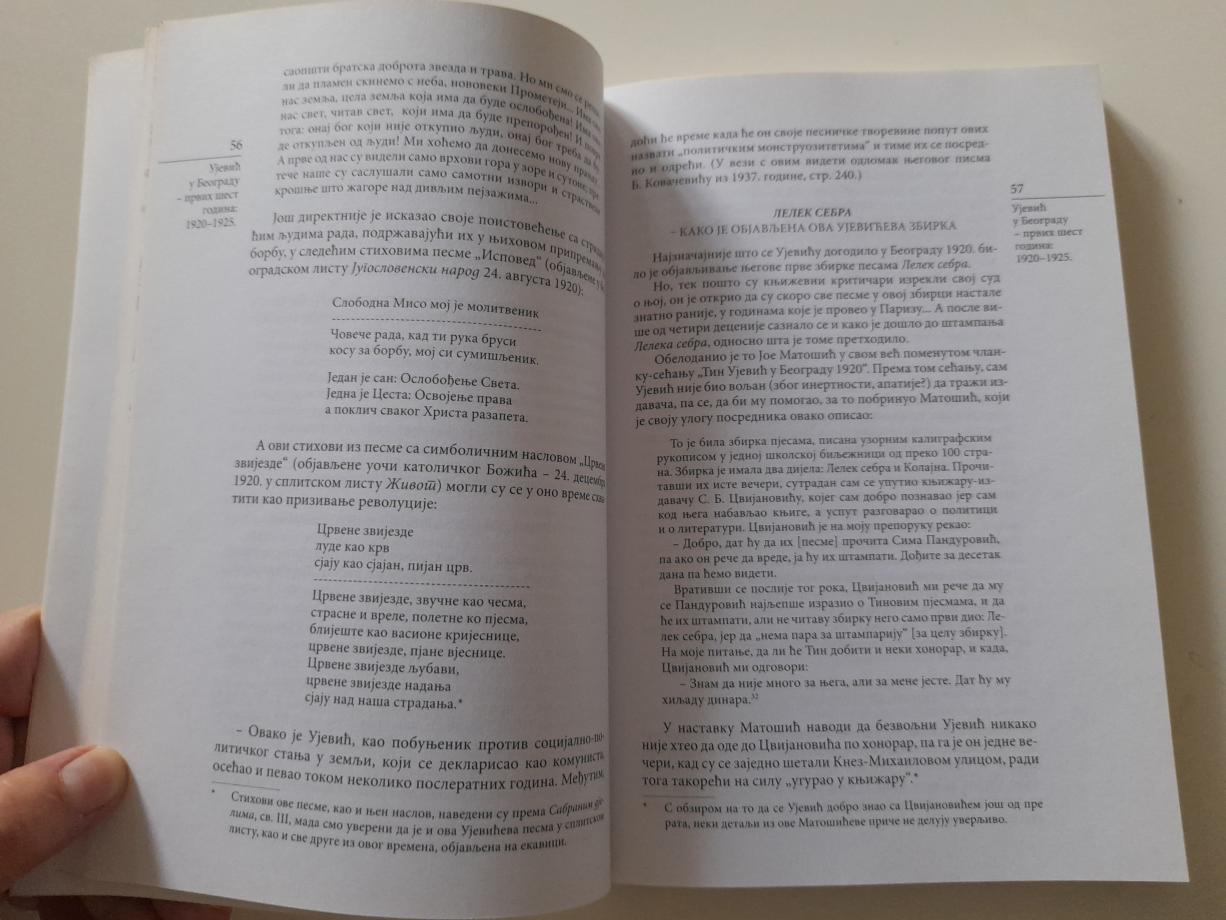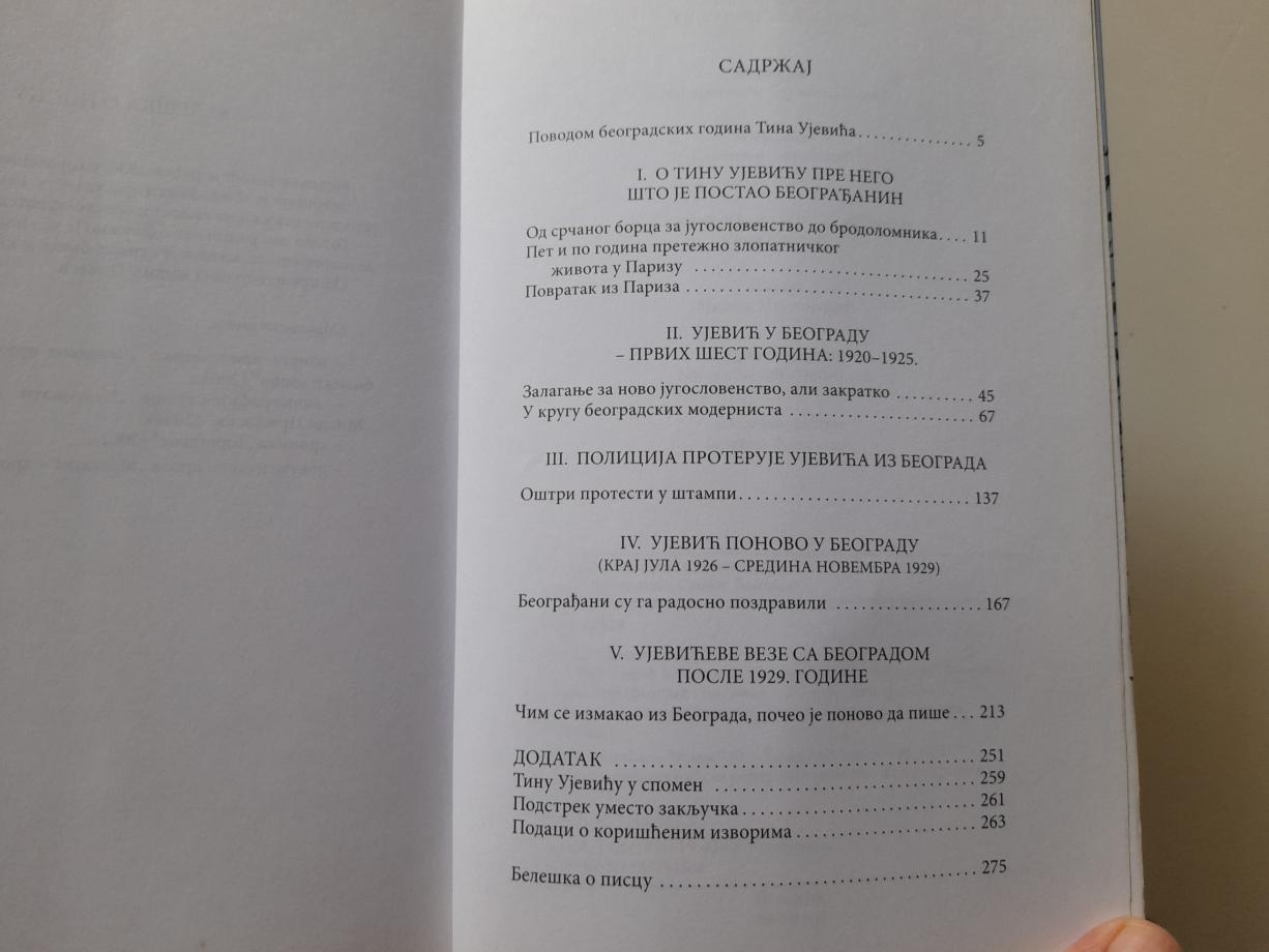 Tin Ujević je u tri navrata boravio u Beogradu - 1912. kao izgnanik iz Hrvatske, odnosno Austro-Ugarske, zatim od početka 1920. do sredine novembra 1925, i na kraju od jula 1926. do sredine novembra 1929 - ukupno nepunih deset godina. Uzbudljiva priča o jednom od najvećih hrvatskih i jugoslovenskih književnika - zašto ne reći i srpskih (u krugu modernista s kojima je stvarao književnu i intelektualnu klimu Beograda) jer je u kontekstu ove literature stvorio veoma zamašan i izuzetan opus (Lelek sebra, Kolajna), ogroman broj raznolikih književnih radova rasutih po mnogobrojnim beogradskim listovima i časopisima. Beogradske godine Tina Ujevića sadrže dve različite priče: prva je veoma plodna i izrazito podsticajna modernistička stvaralačka magija, druga je obeležena ekstremnim boemstvom. Ovo je otkrivalačka, inspirativna, dobro sklopljena priča o jednom velikanu a i kralju beogradske boemije. Čita se kao uzbudljiv avanturistički roman...