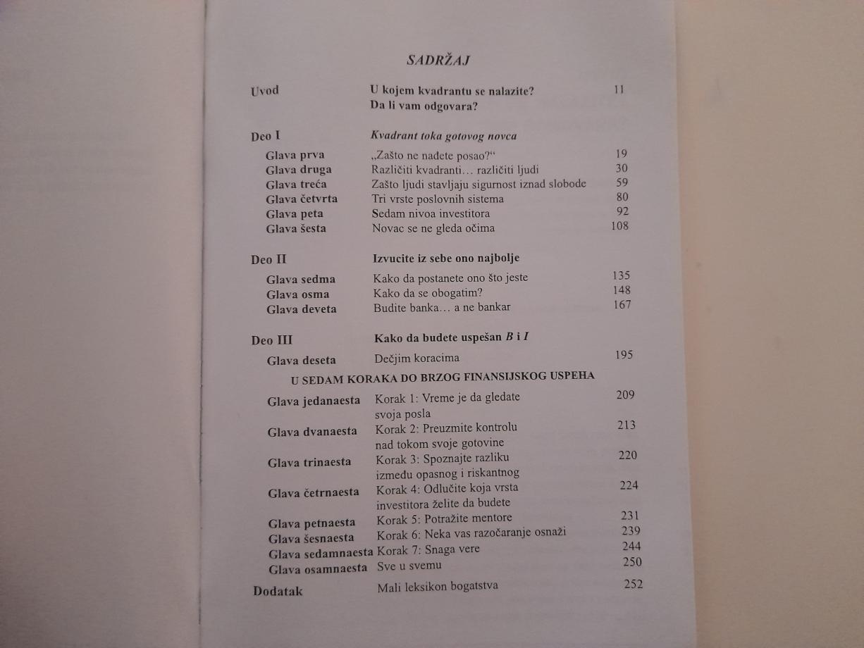 Da li primećujete da mnogi od najsjajnijih diplomaca naših univerziteta žele da rade za one koji nikad nisu diplomiirali... Nesvršene studente poput Bila Gejtsa iz Majkrosofta, Ričarda Brensona iz Virdžin industrije, Majkla Dela iz Del kompjutersa, Teda Tarnera iz Si-En-Ena? Za nesvršene studente koji su danas među najbogatijim ljudima na planeti. Tok gotovog novca otkriće vam zašto neki ljudi manje rade a više zarađuju, plaćaju manje poreze i osećaju se finansijski sigurniji od ostalih. Stvar je naprosto u tome da naučite iz kog kvadranta da delujete i kad.