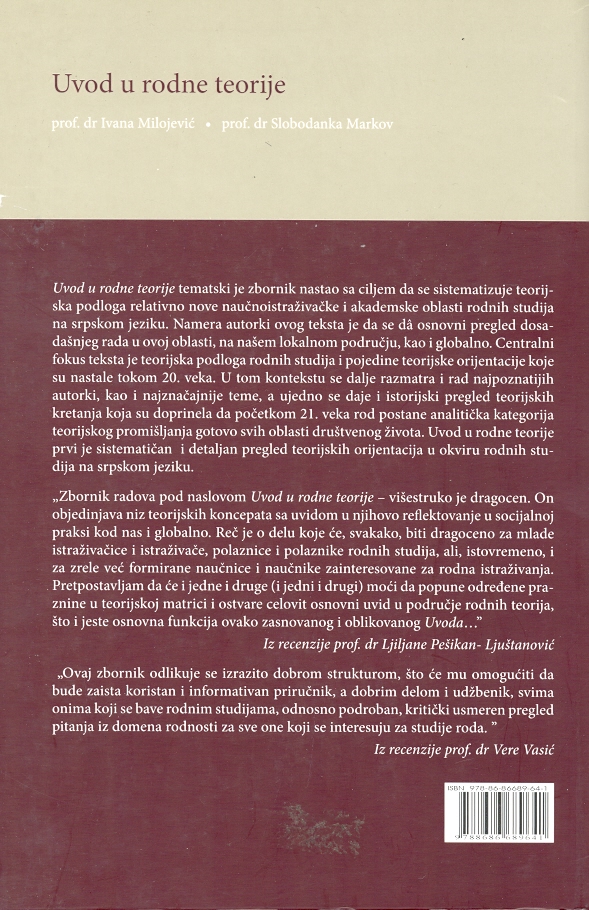 Ovakvo sumiranje dosadašnjih saznanja iz oblasti rodne analize i rodnih studija koje zbornik nudi je ključno kako bi se bolje razumeli neki sadašnji i budući tokovi razvoja društva generalno a pogotovo tendencija smanjenja odnosno ojačavanja patrijarhalnog, ili alternativno, društva rodne ravnopravnosti. Sistematizacija je bitna i kako bi se omogućila dalja nadogradnja na već stvoreni fond znanja.