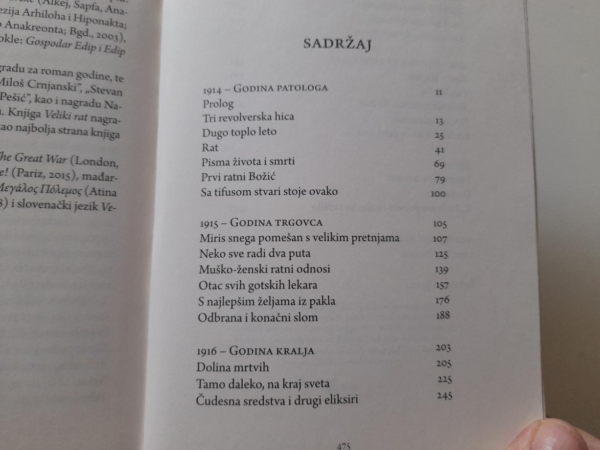 Povest o Velikom ratu, u širokom prostornom i vremenskom planu, (četiri godine rata, sva evropska bojišta, sve suprotstavljene strane), utemeljen na mnoštvu istorijskih realija, besprekorno obogaćen simboličkim, nadrealnim i fantastičnim, spojio je fizičko i metafizičko egzistiranje u polifonu priču o nepobitnoj istorijskoj činjenici, koja u romanu dobija sasvim novo značenje.