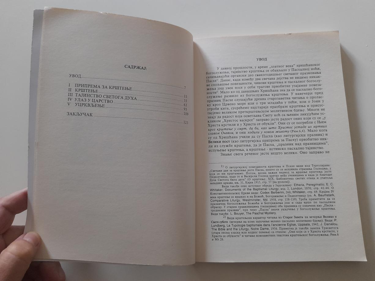 U knjizi „Vodom i duhom“ Aleksandar Šmeman otkriva duboki smisao Svete Tajne Krštenja. U davnoj prošlosti tajinstvo krštenja se obavljalo u Pashalnoj noći, sačinjavajući organski deo svakogodišnjeg svečanog praznovanja Pashe (Vaskrsa). U navečerje pred praznik Pashe slušajući drevna starozavetna čitanja o prolasku kroz Crveno more ili o tri mladića u peći, ili o Joni u utrobi kita, susrećemo najstarije praobraze krštenja i prisustvujemo velikom pretkrštenjskom molitvenom bdenju. Radost koja osvetljava Svetu noć sa njenim likujućim usklikom „Hristos vaskrse” zapravo jeste radost onih koji su se „u Hrista krstili i u Hrista se obukli”.
