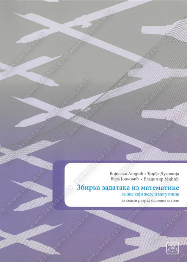 Zavodova zbirka zadataka iz matematike za sedmi razred osnovne škole.