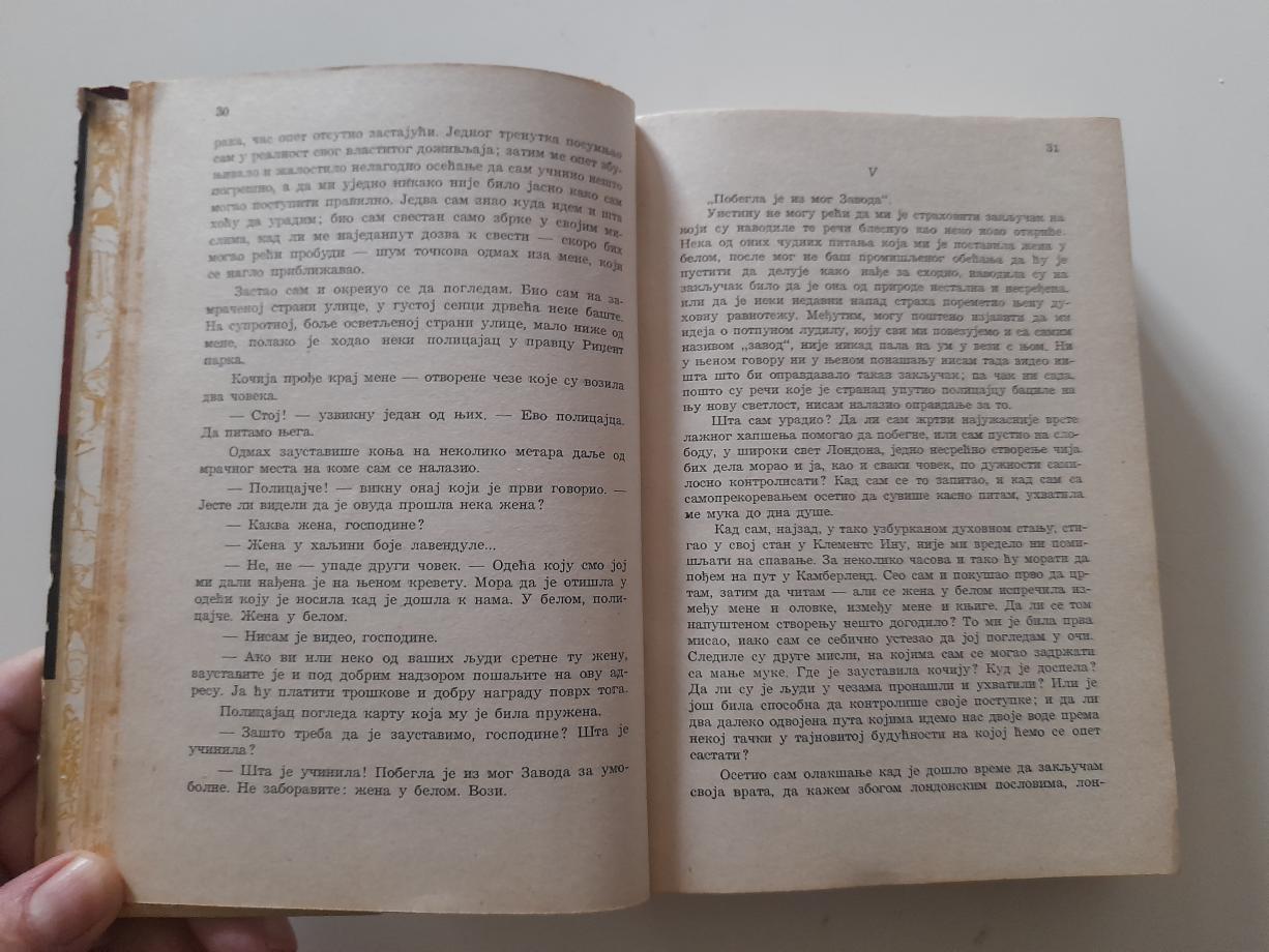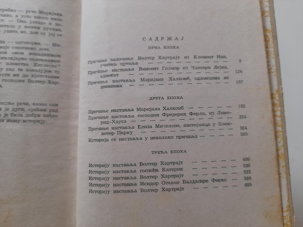 “Žena u belom” je priča o misterioznoj ženi u belom, koja se pojavljuje u različitim oblicima i na različitim mestima, ostavljajući za sobom tragove jedne mračne tajne. Glavni junak, mladi advokat Volter Hartrajt, upliće se u zamršenu mrežu događaja i mora da reši niz zagonetki kako bi došao do istine. Roman je isprepleten elementima romantike, psihološke drame i gotičke atmosfere, stvarajući jedinstven osećaj napetosti i nelagodnosti. Roman je objavljen 1860. godine i od tada ne prestaje da fascinira čitaoce širom sveta.