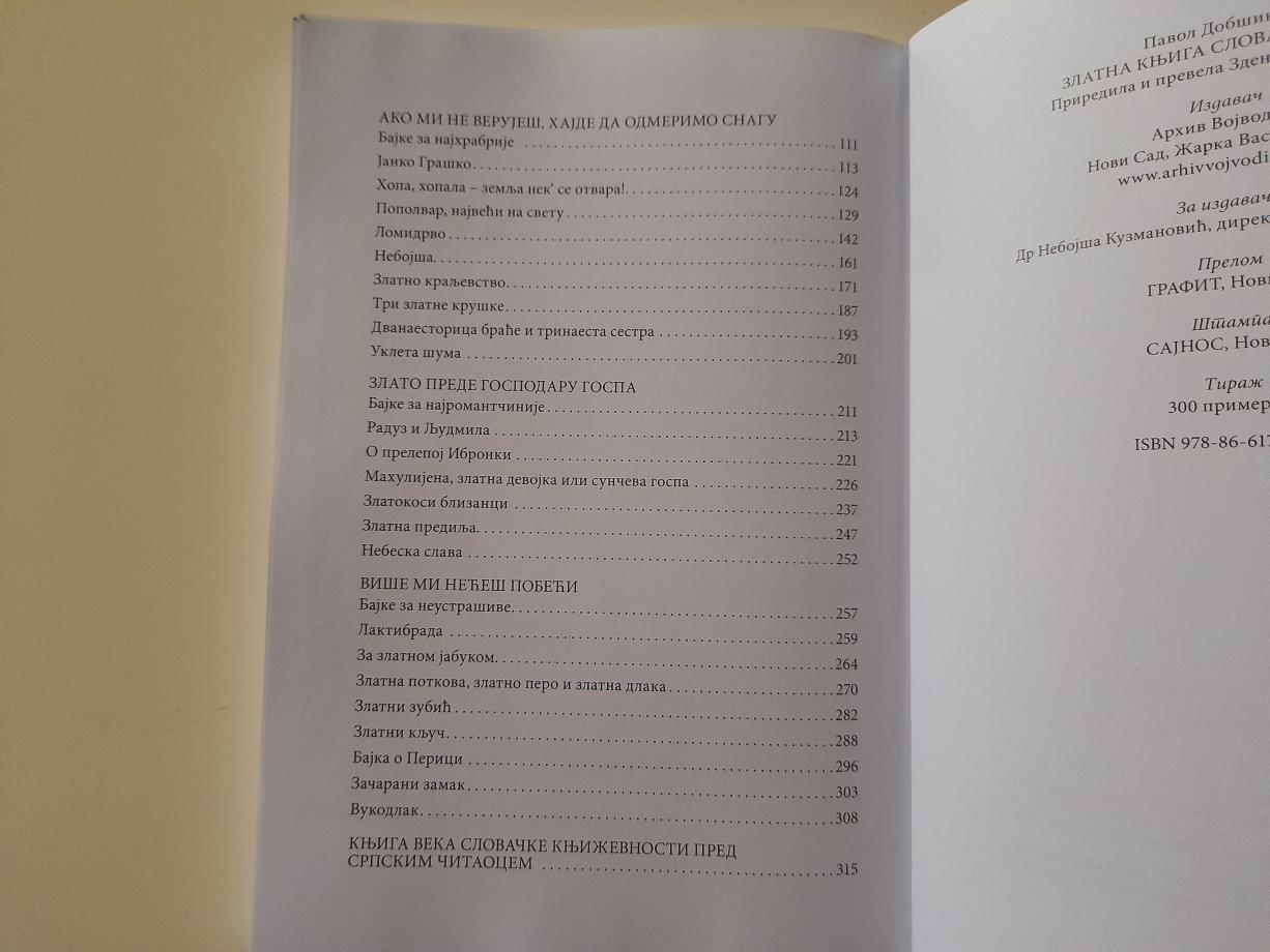 Knjiga „Zlatna knjiga slovačkih bajki“ je delo namenjeno najmlađima, objedinjuje najlepše priče iz kapitalne zbirke „Prostonarodne slovenske povesti“ Pavola Dobšinskog, jednog od najznačajnijih slovačkih sakupljača priča iz naroda.